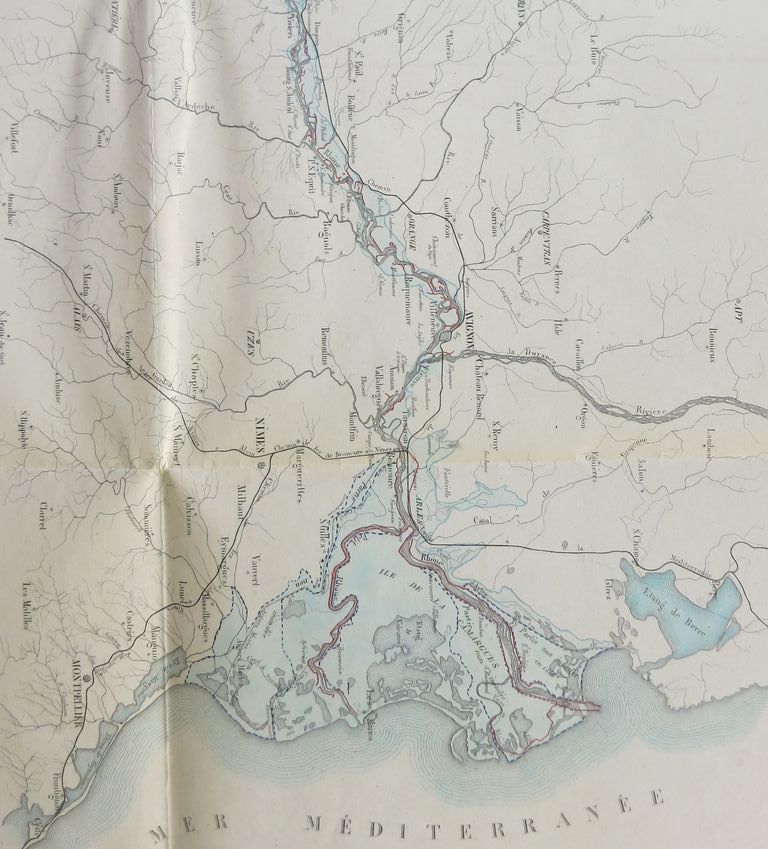 Original title (in French): Carte du Rhône entre Genève et la mer. English title: Map of the Rhône river between Geneva and the sea.