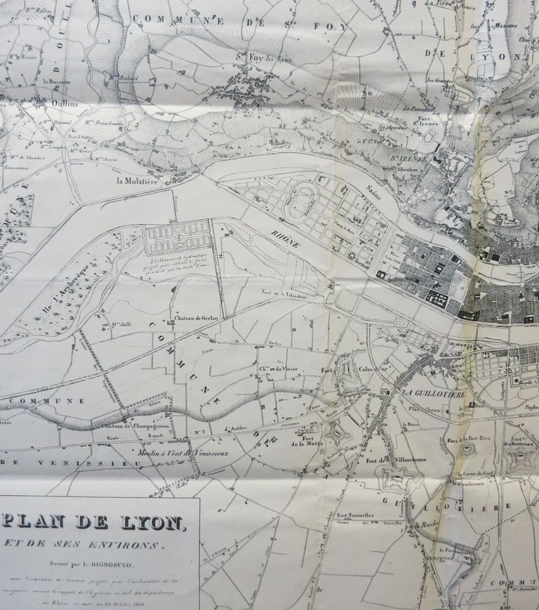 Original title (in French): Plan de Lyon et de ses environs. English title: Map of Lyon and its surroundings.