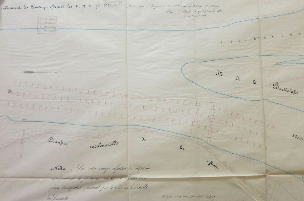 Original title (in French): Plan indiquant les sondages effectués les 11, 12, 13 septembre 1854. English title: Plan indicating surveys made on 11, 12, 13 September 1854.