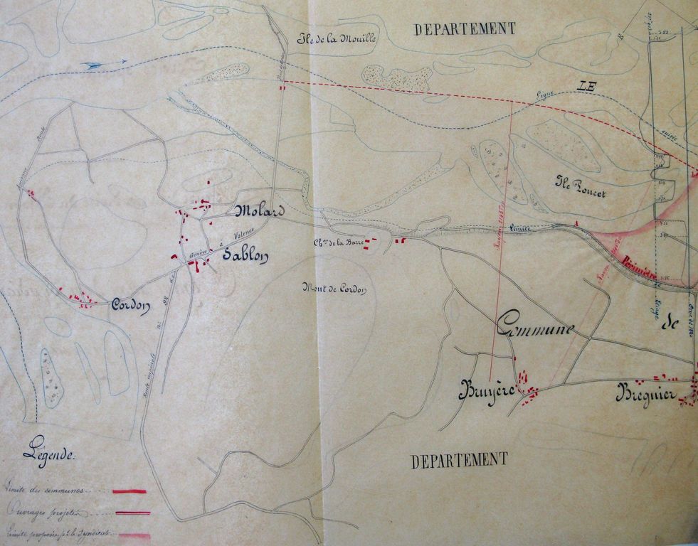Original title (in French): Défense de la rive droite du Rhône entre l'île Poncet et l'embouchure du Gland. English title: Defence of the right bank of the Rhône river between Poncet island and the Gland confluence.