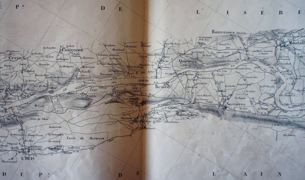 Original title (in French): Carte du cours du Rhône du Parc à Lyon. English title: Map of the Rhône river from the Park (Surjoux) to Lyon.