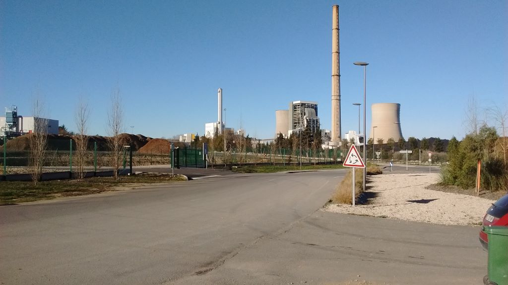 Centrale biomasse: vue stock bois et centrale