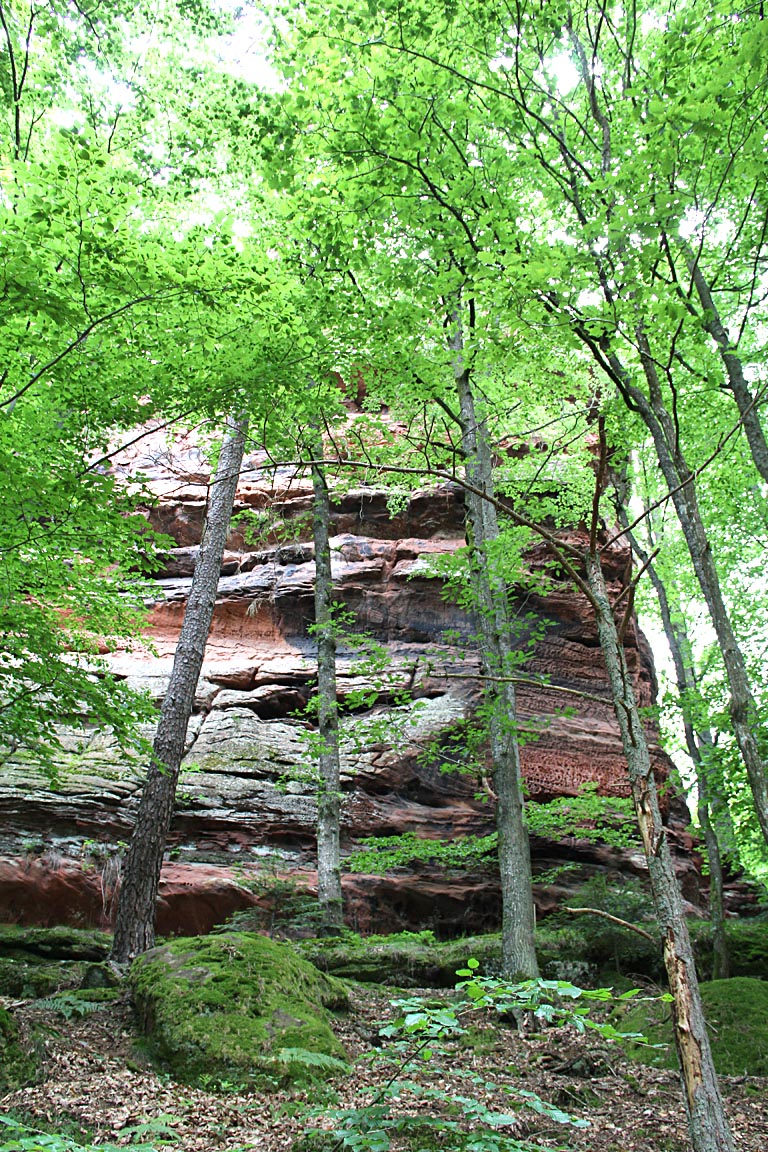 Rocher de grès dans le massif ruiniforme des Erbsenfelsen