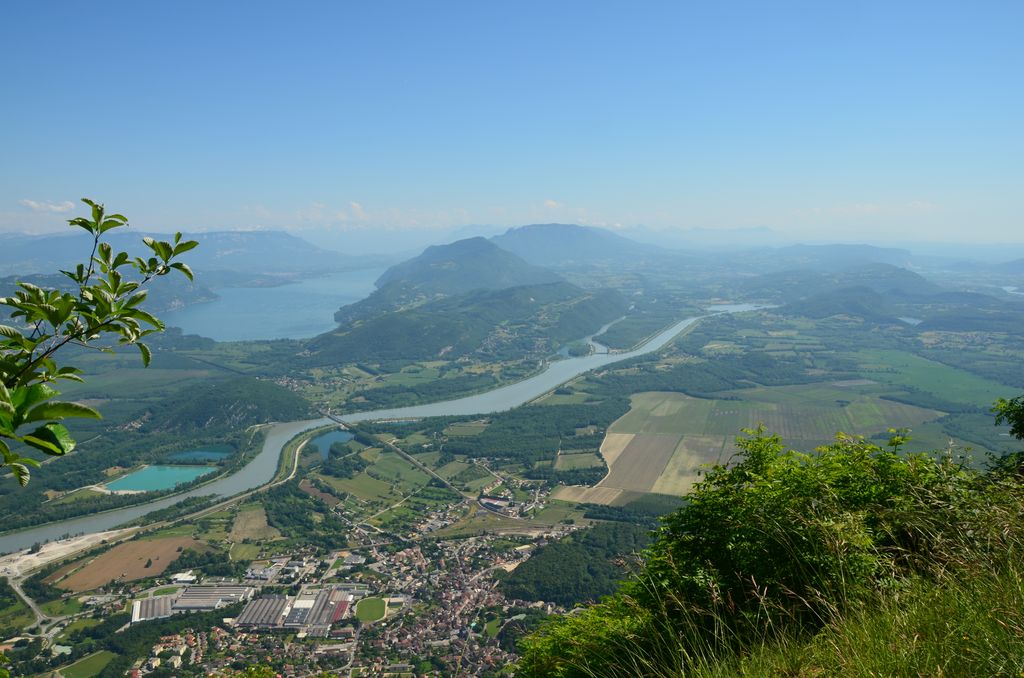 Vue du Rhône de Belley et du lac du Bourget depuis le massif du Colobier
