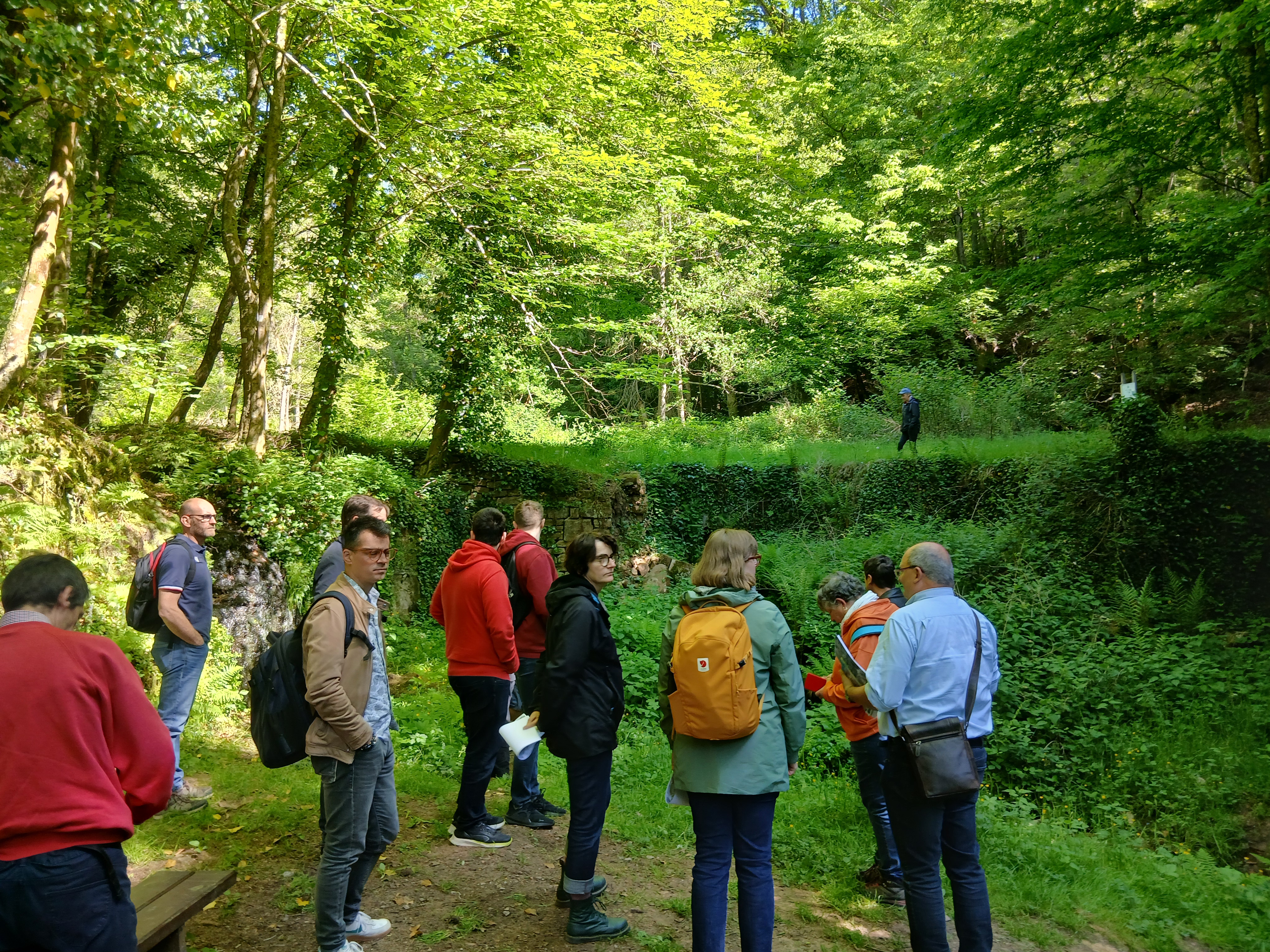 Lecture de paysage sur un site patrimonial. Ce vallon est exploité par les charbonniers depuis le XVIIe siècle au moins, puis en partie défriché avec aménagement de deux moulins quand le développement des industries impose une production alimentaire locale pour les populations nouvellement installées (vers 1750). Le hameau ainsi constitué est détruit par la guerre en 1945. La dynamique de renaturation est affirmée par des effacements d'étangs entre 2008 et 2015, menant au retour d'une évolution naturelle du cours d'eau.