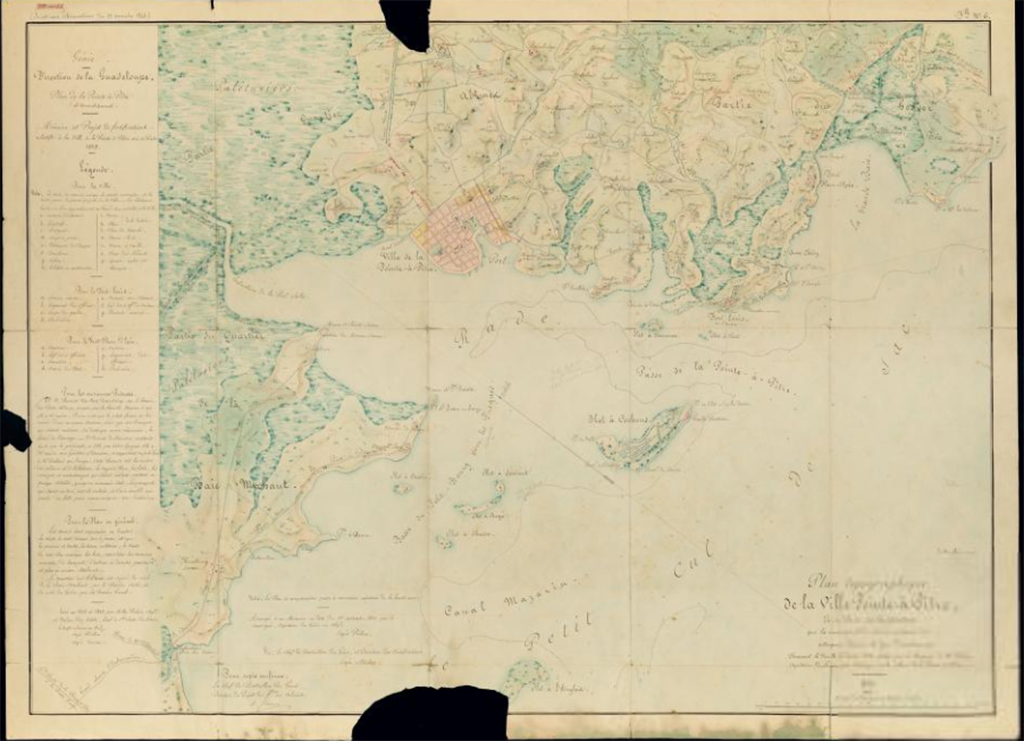Plan topographique de la Ville de Pointe-à-Pitre de sa rade , des fortifications qui la couvrent et du terrain présumé des attaques