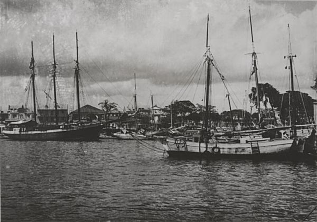 Goélettes dans le port de Pointe-à-Pitre en 1946