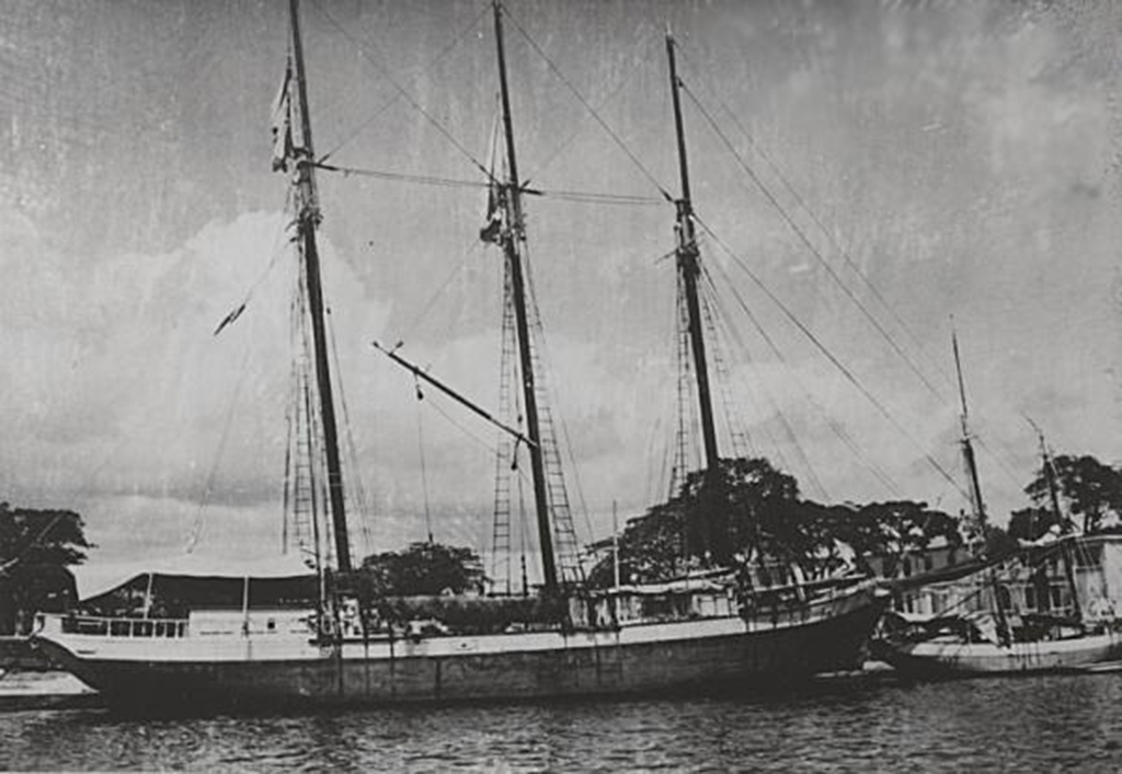 Goélette à quai dans la Darse