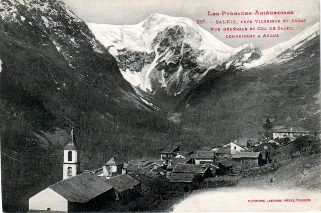 Carte postale : Série Les Pyrénées Ariégeoises - 257 - Saleix près Vicdessos et Auzat - Vue générale et col de Saleix conduisant à Aulus